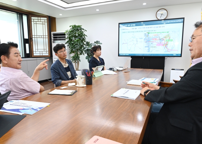 시장실에서 열린 이번 회의에는 시장, 교통국장, 관련 부서장 등 10여 명이 참석해 교통신호체계 및 신평화로 중앙버스전용차로(BRT) 개선, 주차공유 사업 추진 방안 등에 대해 논의했다.