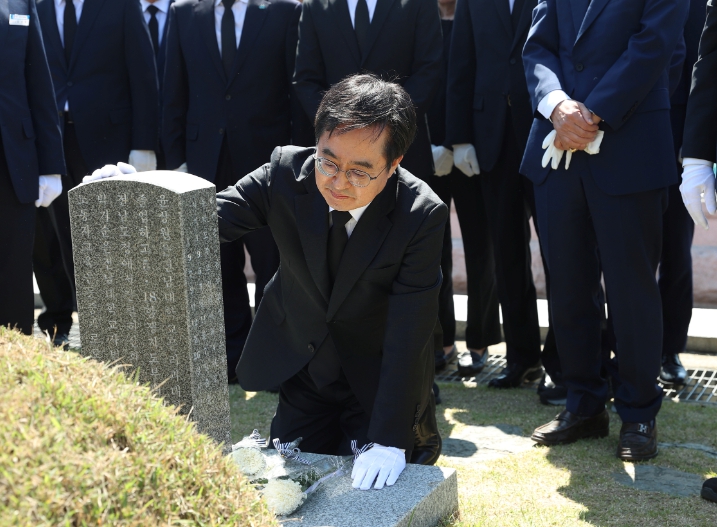 ▲ 김동연 경기도지사가 3일 오전 광주광역시 북구 운정동 국립5·18민주묘지에서 경기도민 민주유공자들을 참배하고 있다. |