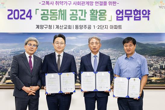 [뉴스서치] 인천광역시 계양구는 19일 고독사 위험군 밀집 지역을 중심으로 사회적 관계망이 취약한 주민을 위한 공유공간 조성 마련을 위해 계산교회, 동양주공 1·2단지 아파트와 업무협약을 체결했다고 밝혔다.