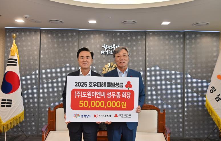 [뉴스서치] 충남도는 ㈜도원이엔씨로부터 호우 피해복구 지원 성금 5000만원을 전달받았다고 21일 밝혔다.