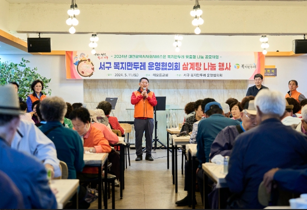 [뉴스서치] 대전 서구 복지만두레 운영협의회는 지난 11일 가수원동 해오름교회에서 지역 어르신 150여 명을 모시고 삼계탕 나눔 행사를 개최했다.