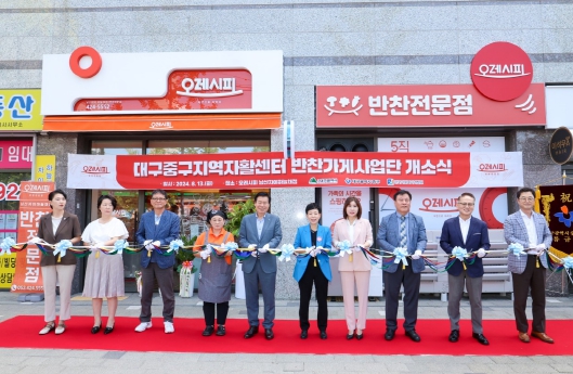 중구는 13일 프랜차이즈 반찬가게 ‘오레시피 대구남산자이하늘채점’ 사업단 개소식을 개최했다. 반찬가게 사업단은 저소득층의 일자리 창출과 자립을 위한 중구지역자활센터의 15개 자활근로사업단 중 하나이다.