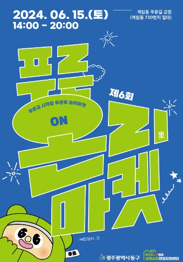 [뉴스서치] 광주 동구는 오는 6월 15일 오후 2시부터 푸른길시작마을 새뜰사업 일환으로 마련된 계림동 푸른길시작마을 축제 ‘제6회 푸른온리(ON里)마켓’을 개최한다고 밝혔다.
