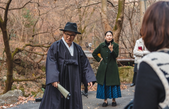 동구는 관내 복합문화공간인 ‘10년후그라운드’와 협업하며 극단 ‘유피씨어터’가 프로그램 운영에 직접 참여한다. 관객들은 무등산의 산길을 따라 과거의 시간 속에 머물러 있는 석아 최원순, 오방 최흥종, 의재 허백련을 순차적으로 만나게 된다.