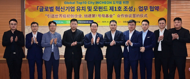 인천시는 8월 28일 시청 대접견실에서 ㈜하다(대표이사 웬 차오준/ Wen Chaojun), ㈜프리먼(대표이사 시에 차오펑/ Xie Chaofeng), 인천테크노파크(원장 이주호)와 함께 ‘글로벌 혁신 기업 유치 및 모펀드 제1호 조성’에 관한 업무협약을 체결했다.