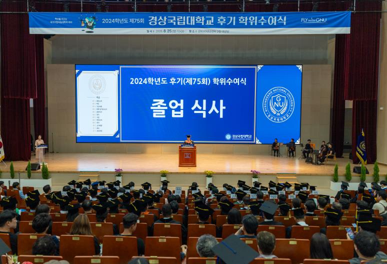[뉴스서치] 경상국립대학교는 2024학년도(제75회) 후기 학위수여식을 8월 25일 오전 10시 가좌캠퍼스 GNU컨벤션센터 대강당에서 개최했다.