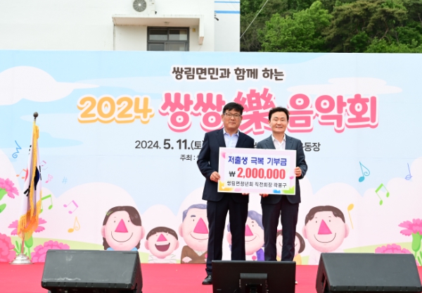 [뉴스서치] 지난 5월 11일 쌍림중학교 운동장에서 열린‘2024 쌍쌍樂음악회’행사에서 쌍림면 청년회 곽봉구 직전회장은 저출생 극복을 위한 성금 200만원을 기탁했다.