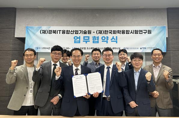 [뉴스서치] (재)경북IT융합산업기술원과 한국화학융합시험연구원은 2일 글로벌코스메틱 비즈니스센터에서 화장품 기업의 성장을 지원하기 위한 업무협약을 체결했다.