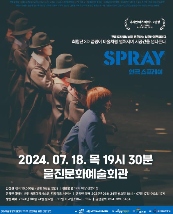 [뉴스서치] 울진군은 오는 7월 18일 오후 7시 30분에 울진문화예술회관(후포)에서 연극‘스프레이’공연을 개최한다.