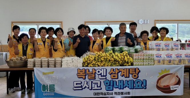 [뉴스서치] 대한적십자사 적라봉사회는 지난 26일, 중복을 맞아 여름철 건강 증진을 위해 취약계층 40가구에게 건강한 보양식인 삼계탕을 전달했다.