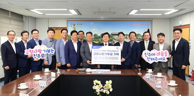 [뉴스서치] 진주시는 11일 시청 기업인의 방에서 거제시 농협 임직원 190여 명이 동참한 고향사랑기부금 1923만 원을 기탁받았다고 전했다.