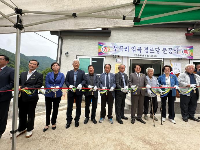[뉴스서치] 청도군은 30일 김하수 청도군수를 비롯한 기관단체장, 지역주민 등 100여 명이 참석한 가운데 매전면 두곡리 임곡 주민들의 숙원사업이었던 임곡 경로당 신축 준공식을 가졌다.
