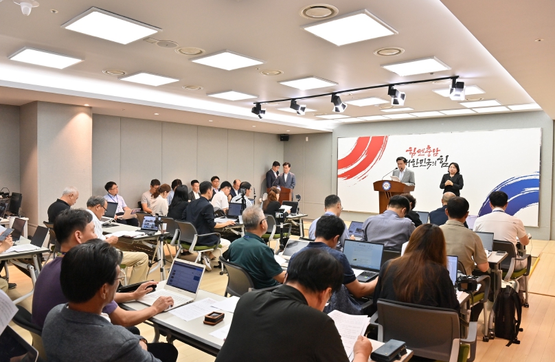 김태흠 지사는 29일 도청 프레스센터에서 기자회견을 열고, 특별재난지역 선포에 따른 호우 피해 특별 지원 대책을 발표했다.