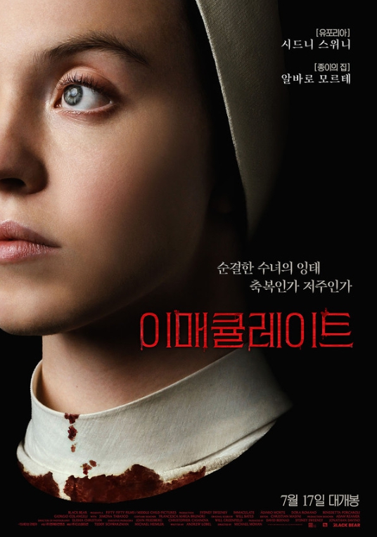 '이매큘레이트'는 이제 막 수녀가 된 ‘세실리아(시드니 스위니)’가 순결한 몸으로 임신한 사실이 밝혀지고, 기적으로 추앙받게 되면서 겪게 되는 충격적인 공포 스릴러.