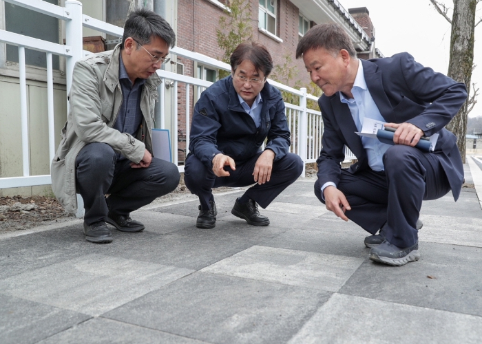 [뉴스서치] 이동환 고양특례시장이 지난 28일 56사단 앞 보도정비사업 현장에 방문해 신설된 대형보도블록의 정비 상태와 바닥방향표지판 등을 점검했다.