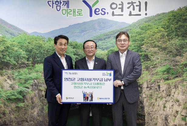 ▲ 임순혁 농협생명 부사장·이재진 농협중앙회 경영지원부장 연천군 고향사랑기부제 동참 |