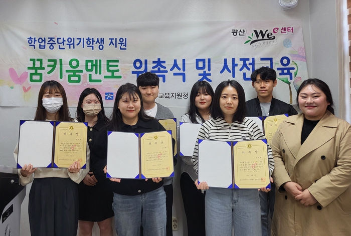 10일 서부교육지원청에 따르면 이날 행사는 조선대학교 심리상담센터 소속 대학원생과 대학생 멘토 6명에 대한 위촉장 수여와 멘토링 활동 과정, 멘토의 역할 및 윤리에 대한 교육 등으로 구성됐다. 멘토들은 앞으로 학교 적응과 정서적 지지를 위한 1대 1 맞춤형 개인 멘토링과 행동 조절력, 사회기술 향상을 위한 또래 집단 멘토링의 2가지 형태로 운영된다.