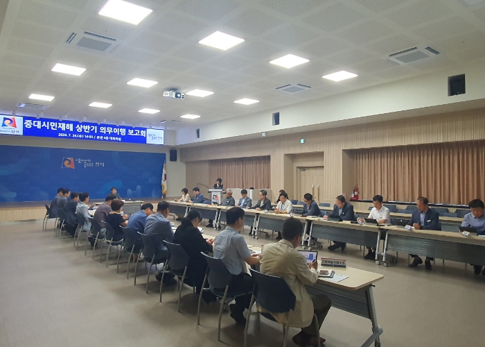 이날 보고회에는 ▲부시장 ▲국·소장 ▲시설물 소관 부서장 등 25명이 참석했으며 중대시민재해 총괄부서에서 상반기 의무이행 사항 총괄보고 후 부시장 및 부서장의 질의·답변 순으로 진행됐다.