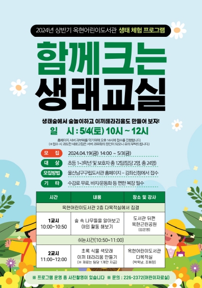 ▲ 울산 남구 옥현어린이도서관, 상반기 생태 체험 프로그램 모집 |