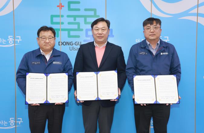 [뉴스서치] 울산 동구는 4월 8일 오후 2시 구청장실에서 김종훈 동구청장, 김동일 HD현대중공업(주) 전무, 김창환 HD현대미포(주) 상무 등 관계자들이 참석한 가운데 외국인노동자 공공체육시설 이용 및 사용료 감면 협약을 체결하였다.