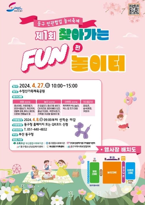 [뉴스서치] 부산 동구는 4월 27일 수정산가족체육공원에서 ‘제1회 찾아가는 FUN놀이터’를 개최한다고 밝혔다.