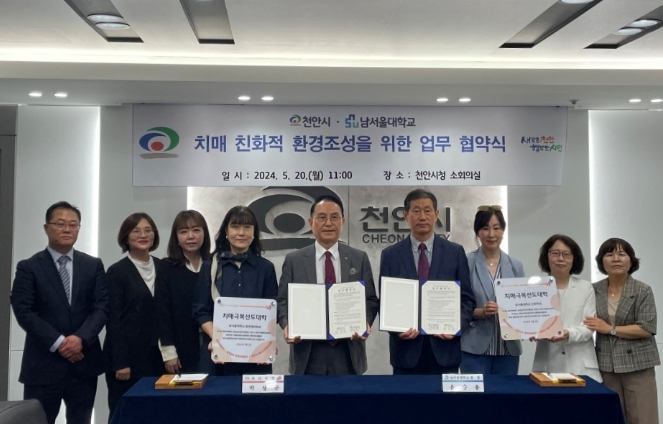 [뉴스서치] 천안시가 ‘치매극복선도대학’으로남서울대학교를 지정하고20일 ‘치매 친화적 환경조성을 위한 업무 협약’을 체결했다.