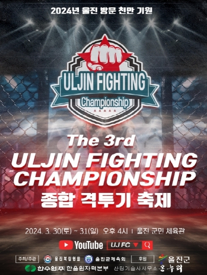 [뉴스서치] 울진군은 30일부터 2일간 울진군민체육관에서'제3회 울진 파이팅 챔피언십 종합 격투기대회'를 개최한다.