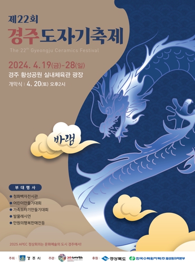 주낙영 경주시장은 “전통을 보존하면서 현대적 재해석을 더해 경주 도자기의 우수성을 보다 발전적으로 승화시키고자 부단한 노력을 이어가는 지역 도예가 협회의 노력과 열정에 감사를 드린다”며 “축제기간 하루하루 바쁜 일상을 잠시 잊고 지역 도자기와 예술가들의 멋과 혼을 느껴보는 좋은 시간을 가져 보길 바란다”고 전했다.