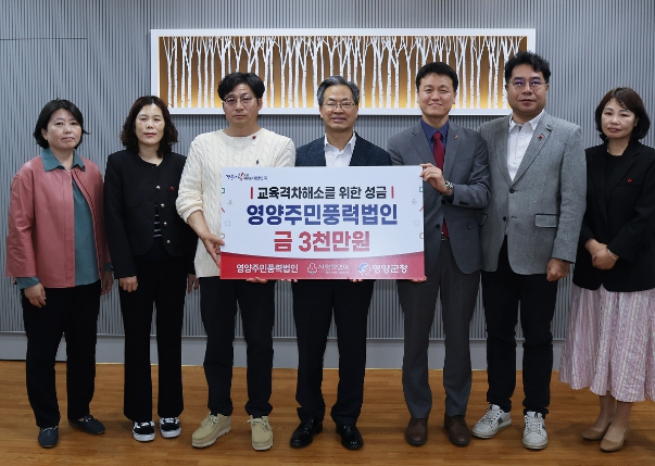 [뉴스서치] 영양주민풍력법인(대표 유학균)은 16일 영양군을 방문해 농촌지역의 아동·청소년의 교육격차 해소를 위한 성금 3,000만 원을 전달했다.