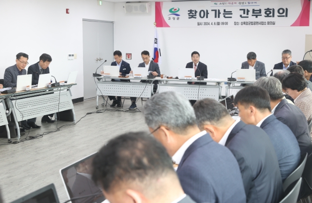 [뉴스서치] 고성군은 8일 이상근 고성군수를 비롯한 간부 공무원 30여 명이 참석한 가운데 상족암군립공원사업소에서 ‘2024년 4번째 찾아가는 간부회의’를 개최했다고 밝혔다.