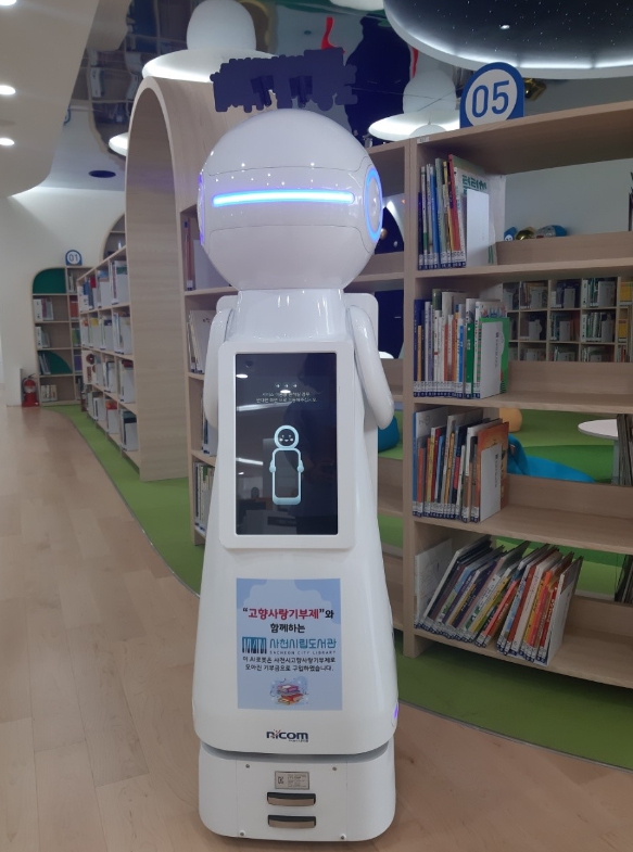 ▲ 사천시립도서관 명물 사서로봇, 로미 등장 귀여운 외모와 똑똑함으로 인기 폭발 고향사랑기부금으로 구입 |