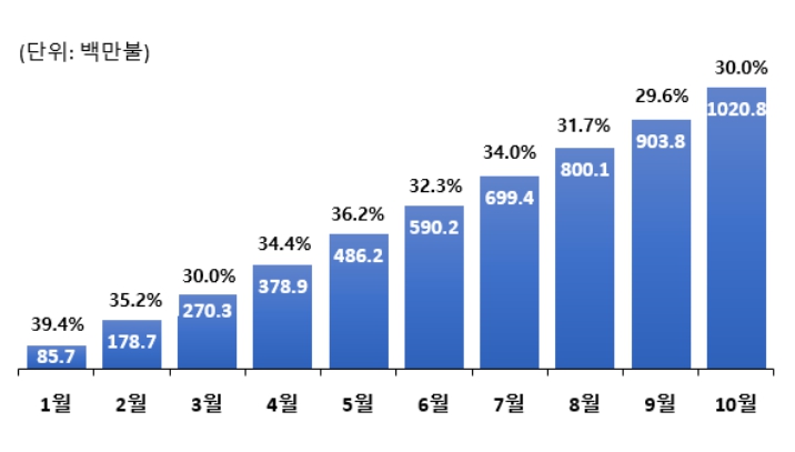 [뉴스서치] 농림축산식품부는 2024년 10월말 기준(누적, 잠정), 라면 수출액이 전년보다 30% 증가한 10억 2,000만불을 달성하여 역대 최고 실적을 돌파했다고 밝혔다. 2023년 라면 연간 수출액인 9억 5,200만불을 10개월 만에 달성한 것이다.