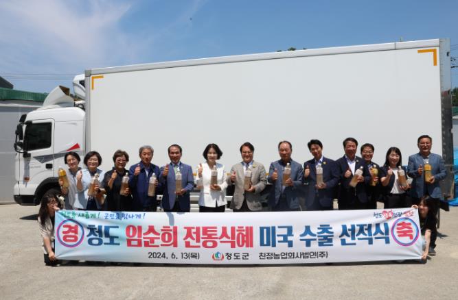 [뉴스서치] 청도군은 지난 13일 친정농업회사법인(주)에서 전통식혜를 미국에 수출하기 위해 수출 선적식을 가졌다.