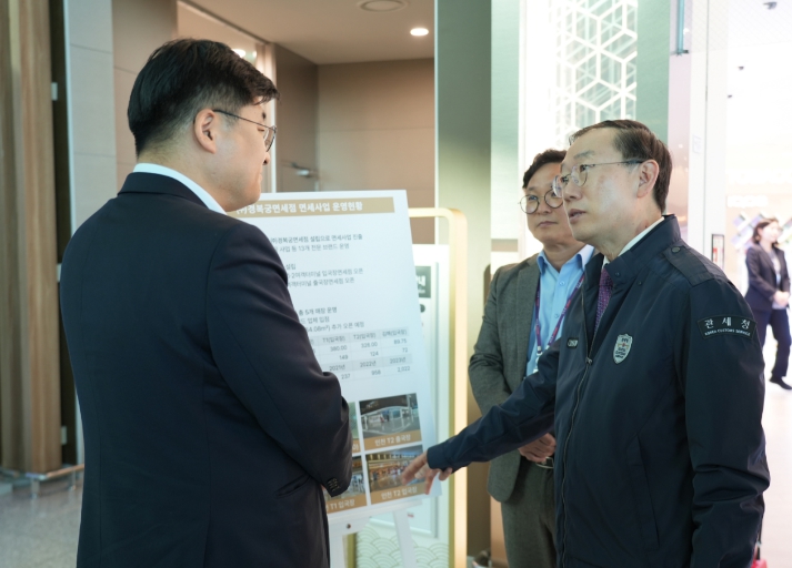 [뉴스서치] 이명구 관세청 차장은 13일 인천공항 출국장 내 중소·중견 면세점인 경복궁 면세점과 판판 면세점*을 방문하여 건의ㆍ애로사항을 청취하고, 중소·중견 면세점 발전을 위한 규제혁신 방안에 대해 논의했다.