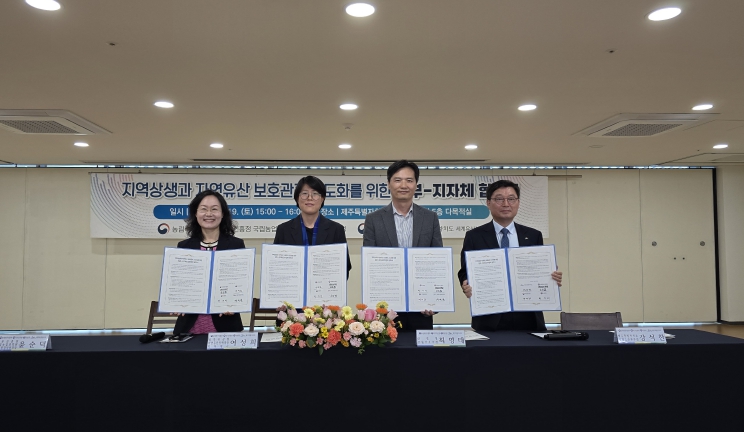 [뉴스서치] 산림청은 19일 제주특별자치도 소통협력센터에서 농림축산식품부, 국가유산청, 제주도 세계자연유산본부와 함께 지역상생과 자연유산 보호관리 고도화를 위한 업무협약을 체결했다고 밝혔다.