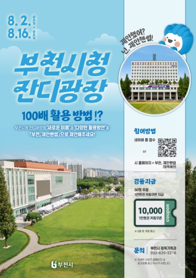 공모 기간은 8월 2일부터 16일까지이며, 시민 누구나 부천시 누리집[부천, 제안핸썹(정책제안)]에 게시된 공모 배너를 클릭해 참여할 수 있다.