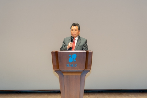 ▲ 지난 4월 12일 ‘2024 구청장기(배) 종목별 대회 출정식’에서 강남구의회 김형대 의장이 축사를 하고 있다. |