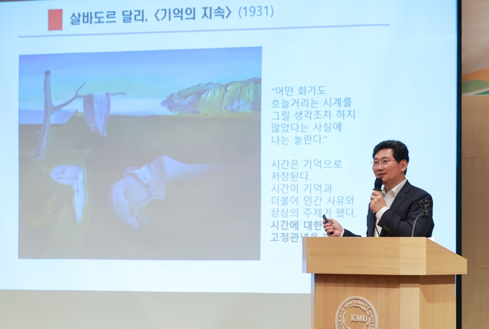 이 시장은 “이중그림 ‘베르툼누스의 모습을 한 루돌프 2세’를 그린 로마 궁정화가 주세페 아르침볼도와 ‘기억의 지속’이라는 작품으로 녹아내리는 시계를 그린 살바도르 달리의 작품도 창의성이 돋보인다”며 관련 그림들을 소개했다. 그러면서 “이들 화가처럼 유연하고 창의적인 사고를 하려고 노력하는 것도 좋은 리더의 조건이 아닐까 싶다”고 말했다.