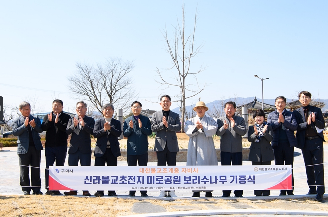 [뉴스서치] 구미시는 13일 신라불교초전지 인근 미로공원에서 김장호 시장, 자비사 정신 스님, 시의원, 주민 등 10여 명이 참석한 가운데 보리수나무(6주) 기증식을 열었다.