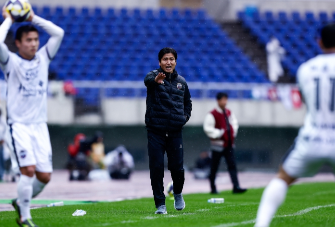 ▲ 5월 5일 광주 원정에서 김천상무 정정용 감독이 선수들에게 지시를 하고 있다 |