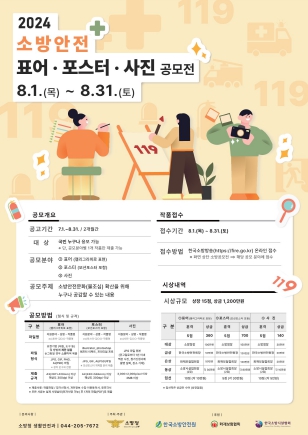 소방청이 주최하고 한국소방안전원이 주관하는 이번 공모전은 ‘소방안전문화(불조심) 확산을 위해 누구나 공감할 수 있는 내용’을 주제로 표어(캘리그래피 표현), 포스터(모션포스터 포함), 사진 총 3개 분야로 모집한다.