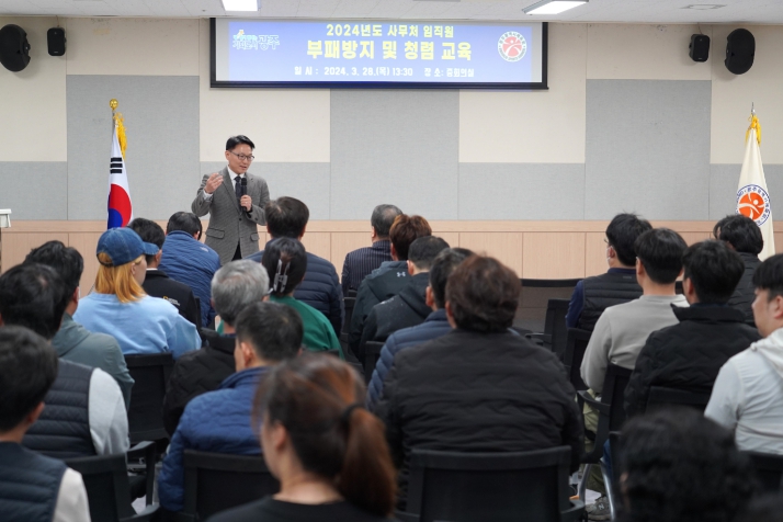이날 교육에는 국민권익위원회 청렴연수원의 전문 강사이며, 광주광역시 비서실 비서관인 이성호 강사를 초빙하여 사무처 임직원과 종목별 지도자, 선수 등 130여 명이 대면 교육에 참여했다.