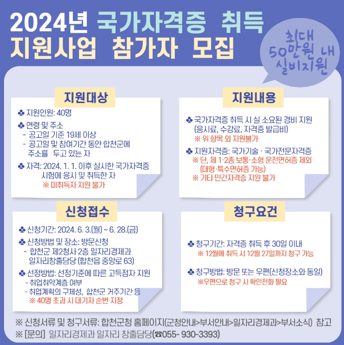 ▲ 합천군, 2024년 ‘국가자격증 취득 지원사업’ 실시 |