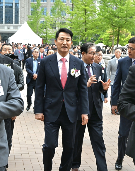 ▲ 오세훈 서울시장이 5일(월) 고려대학교 중앙광장에서 열린 ‘고려대 개교 120주년 기념식’에 참석하고 있다. |