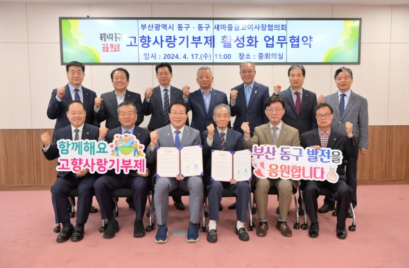 [뉴스서치] 지난 17일 부산 동구는 동구 새마을금고이사장협의회와 고향사랑기부제 활성화를 위한 업무협약을 체결했다.