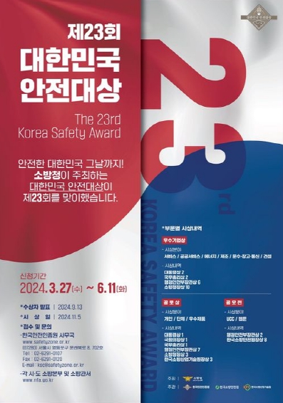 [뉴스서치] 울진소방서는 ‘제 23회 대한민국 안전대상’ 후보를 오는 6월 11일까지 공모한다고 밝혔다.