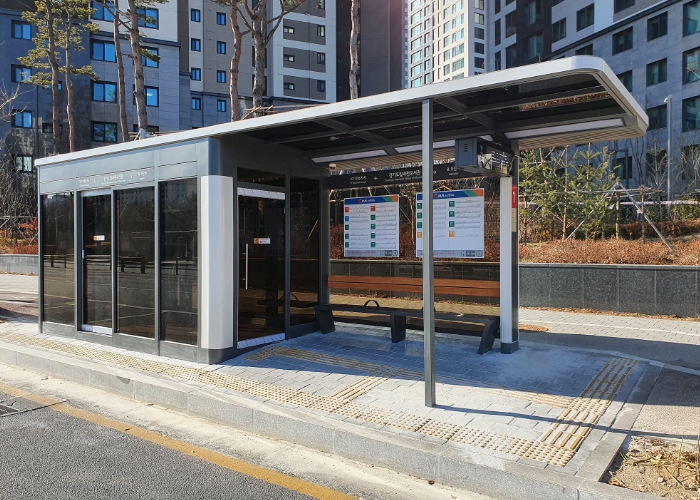 과천시는 문원동 마을버스 종점 버스정류장이 공영주차장 진출입구와 바로 맞닿아 있어 차량 진출입시에 교통안전상의 위험이 있을 수 있고, 정류장이 비교적 협소하여 폭염․한파 대비 시설물을 추가 설치하기가 어려워 스마트 클린 버스정류장으로 교체 설치하는 방안을 추진했다.