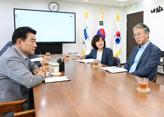 [뉴스서치] 김동근 의정부시장이 8월 1일 시장실에서 서울 106번 버스의 폐선과 106-1번 대체노선 신설에 대한 논의를 위해 운수업체 관계자들과 면담했다.
