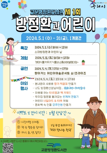 백경현 구리시장은 “구리시민이 가정의 달 행사를 통해 가족 간의 소통과 행복을 느끼고, 교문방정환도서관이 남녀노소 누구나 즐겁고 편하게 찾을 수 있는 공간으로 거듭나길 바란다.”라고 전했다.