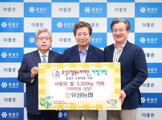 이에 정용래 유성구청장은 “이웃사랑 실천에 동참해주신 유성농협 류광석 조합장님과 임원 여러분에게 감사의 말씀을 드린다”며 “유성구도 다양한 복지정책을 추진하여 이웃사랑과 지역발전을 위해 함께 노력하겠다”고 말했다.